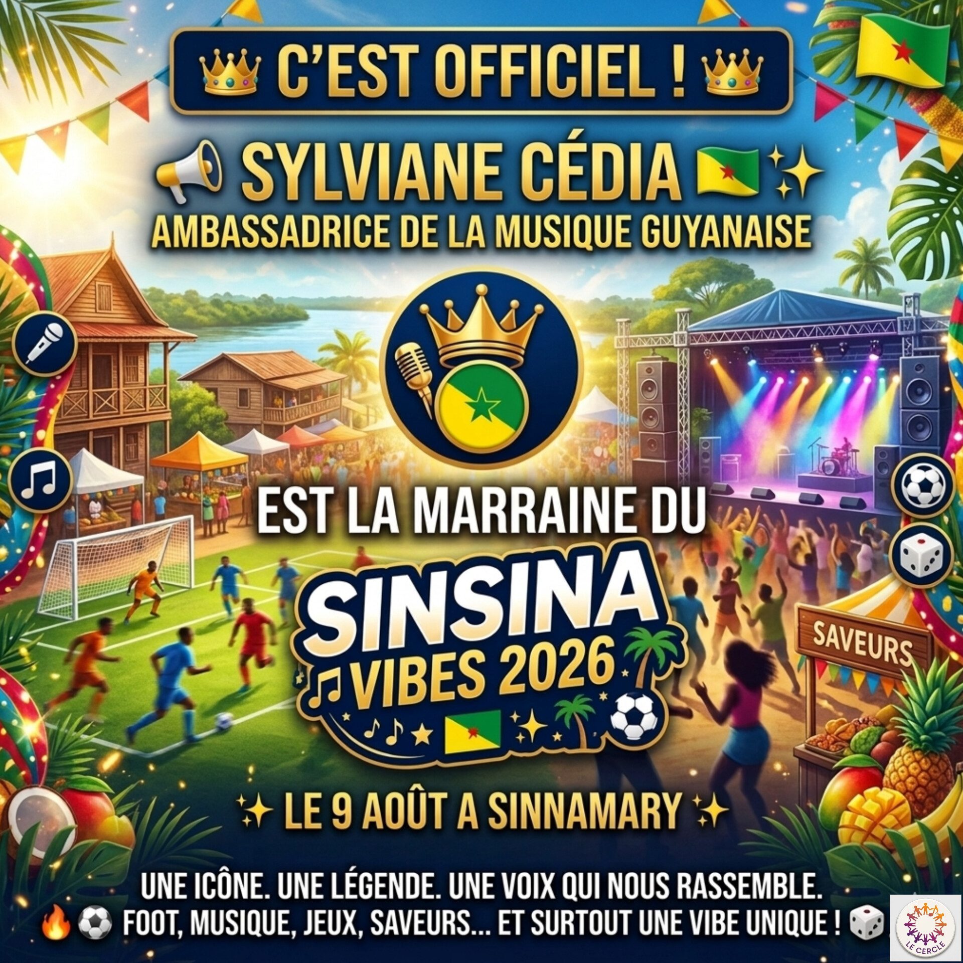 Sylviane Cédia incarne l’âme de la Guyane. Son parcours, sa passion, son amour pour notre territoire et sa musique résonnent en chacun de nous. Avoir une telle légende à nos côtés pour cette édition 2026, c’est bien plus qu’un honneur : c’est la consécration de notre événement comme le rendez-vous incontournable de la culture et de la fête en Guyane. 🔥