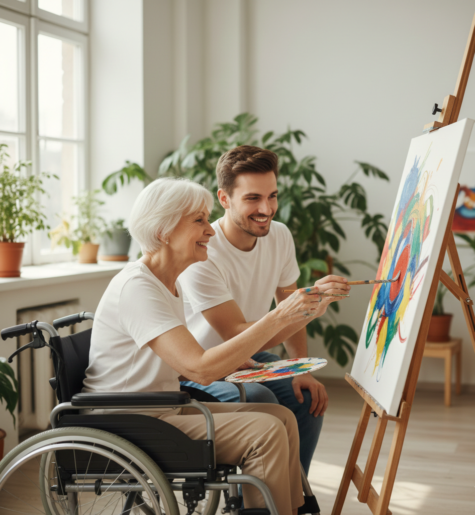 Un jour, un jeune homme du Cercle est venue frapper à ma porte. Il m’a dit : ‘On fait un atelier peinture dans la salle commune, on aimerait beaucoup que vous veniez.’ J’ai failli dire non. Mais il avait un sourire si doux…